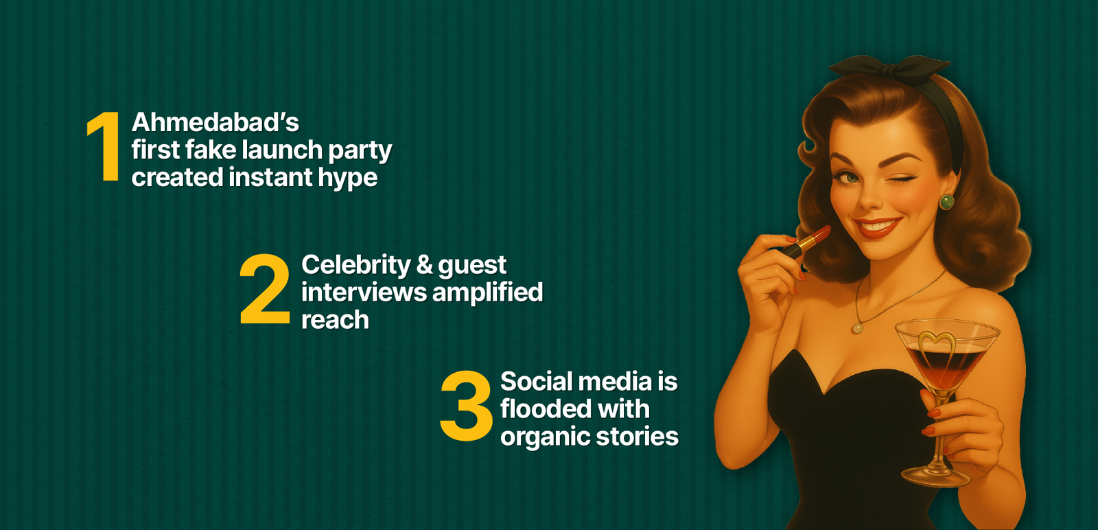 We didn’t stop at a preview. To build hype, we designed a first-of-its-kind fake launch event, something the city had never experienced. Themed around cocktails and conversations, guests received “fake identities” on name cards, posed for fun paparazzi moments and enjoyed games and immersive experiences.